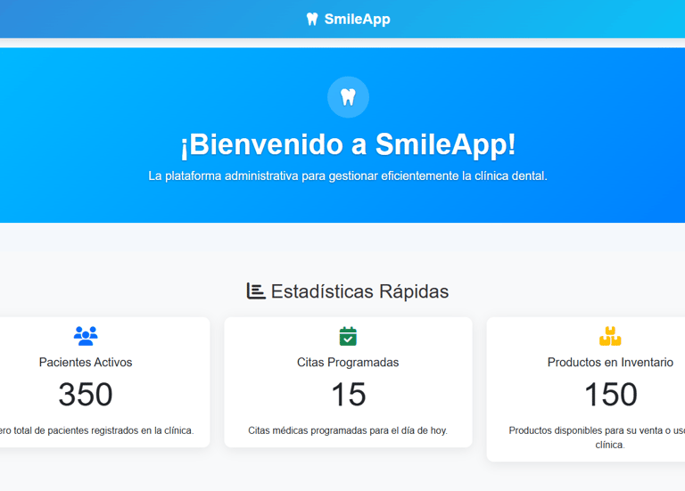 SmileApp es un sistema web que diseñamos para nuestro amigos de la clínica dental Mas Sonrisas.