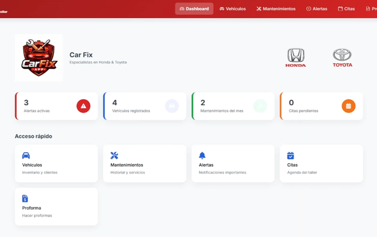 Una suite completa que organiza clientes, citas, inventario, finanzas, reportes y seguridad para optimizar la operación diaria del taller mecánico.